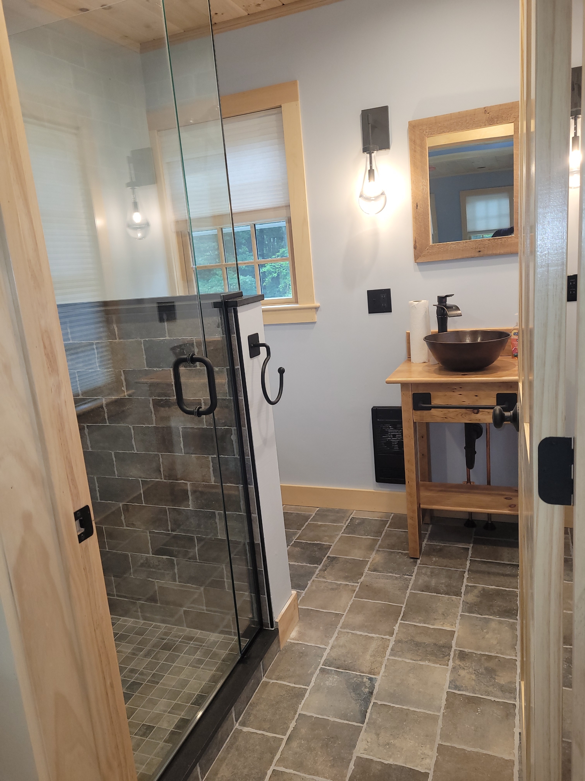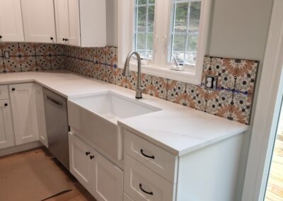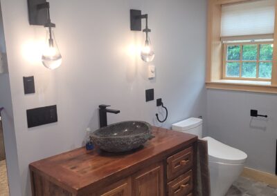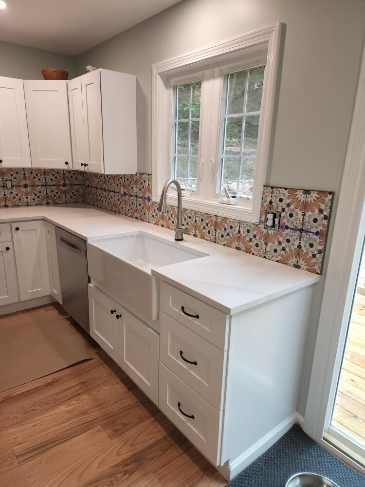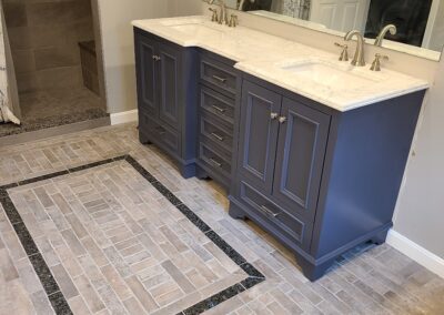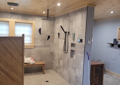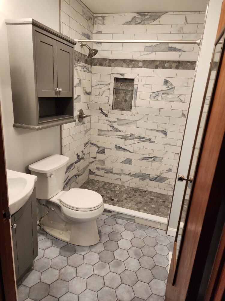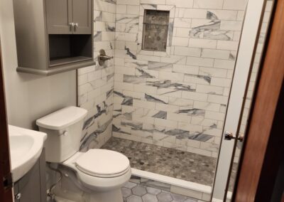 When we made the decision to gut and redo our home, we relied on recommendations for the work that needed to be done. John Finnell and his team from Finn Property Maintenance came highly recommended for the tiling work of our hearth with soapstone landing as well as the two bathrooms, one traditional and one larger spa experience room with a rain shower and soaking tub and private vanity area. From the moment I met John, I knew he was the right person for the job. He met with us at our home and listened to our visions for the new spaces. John then met us at the tile store, and directed us as to what would work best. He offered creative design options for each room which we would never have thought of. John’s attention to detail and pride in his craft became immediately apparent. His step-bystep communication with us and the other on-site contractors was incredible. John’s precise work was that of a true craftsman. The end result – magazine worth spaces!  Thank you, John!